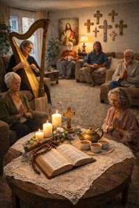 This service works beautifully for small groups and larger gatherings, even up to 50 people. Hosts are encouraged to ask guests to arrive on time and to bring a Bible or devotional material. Comfortable seating and simple hospitality help create a welcoming and prayerful atmosphere.